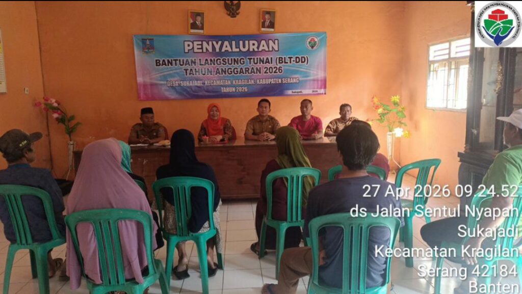 Kegiatan Penyaluran Bantuan Langsung Tunai Dana Desa (BLT-DD) Tahun Anggaran 2026 Bulan ke 1,2 dan 3 Sebesar Rupiah 300.000×3 Bulan x 15 Penerima Manfaat =13.500.000 @Kantor Desa Sukajadi Kec. Kragilan Kab. Serang Leave a Comment / Uncategorized / By desa sukajadi